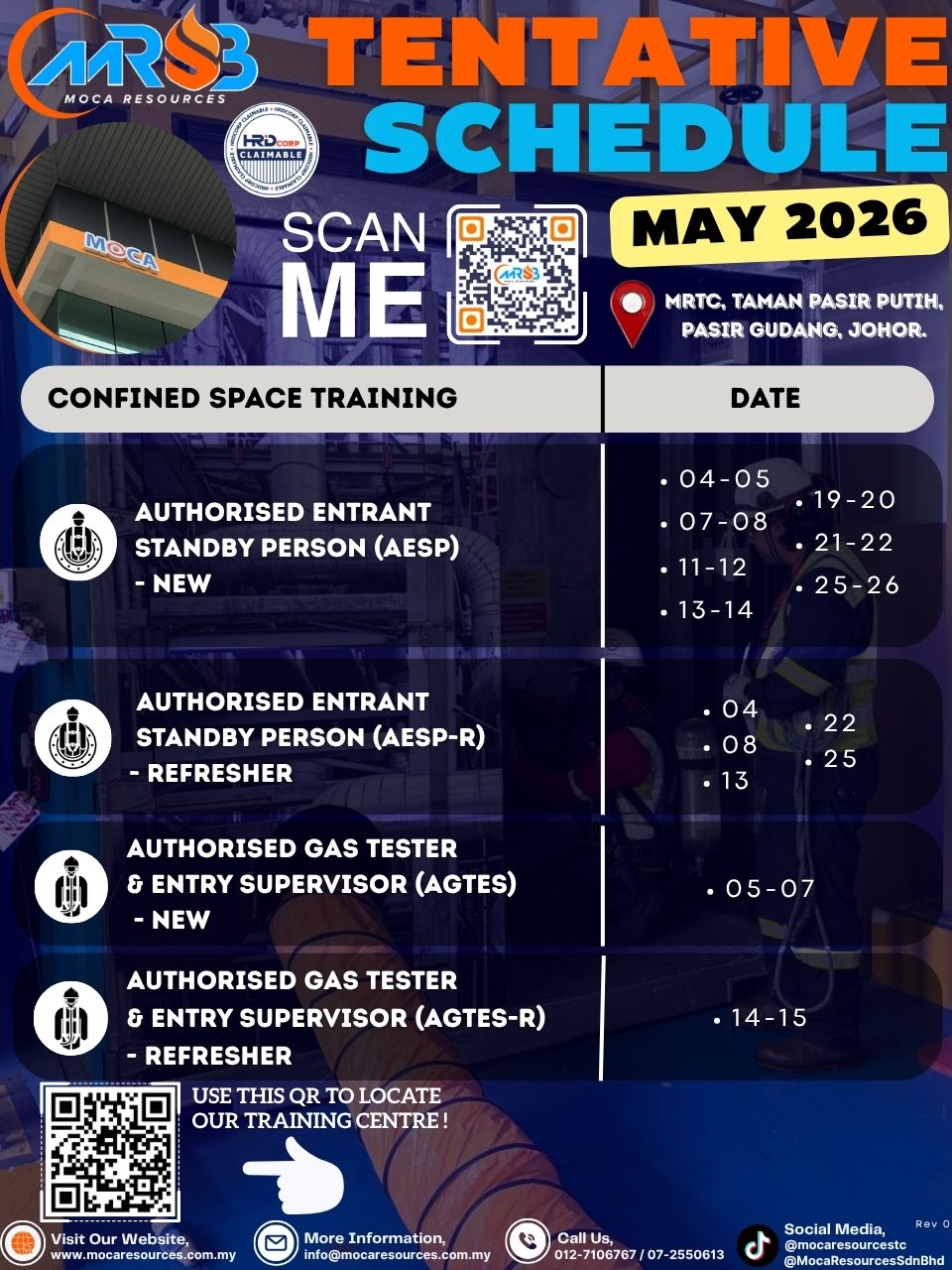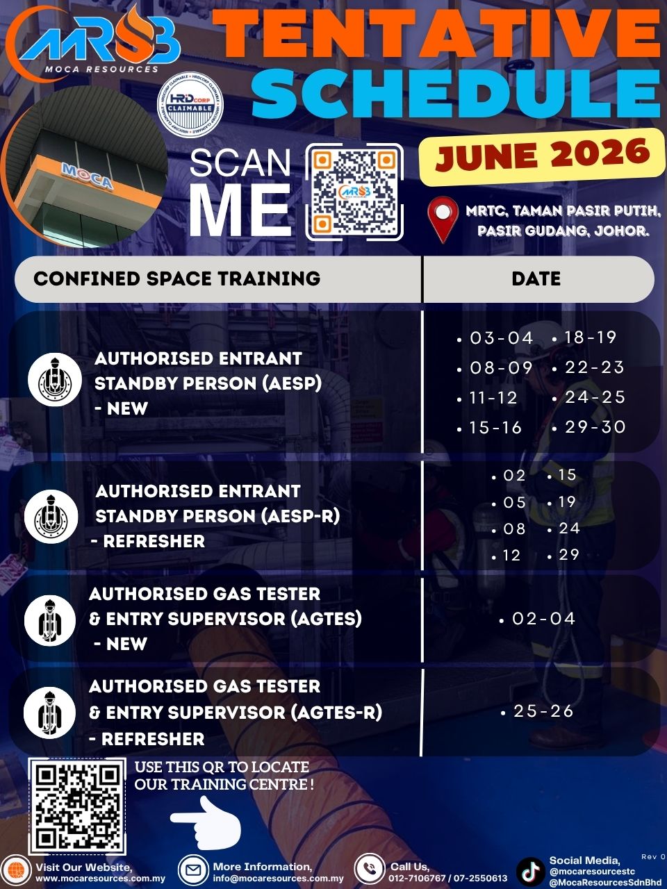 We have 7 DOSH approved Training Centres with confined space simulator and 6 Mobile Training Units (MTU).